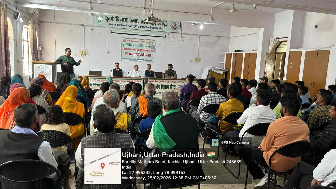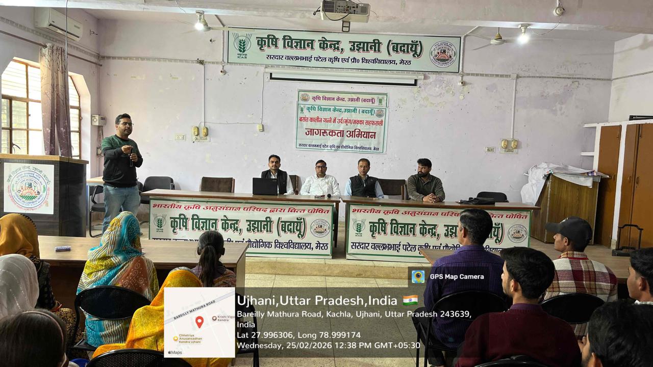 A awareness programme on Sugarcane Intercropping with Maize, Urd and Moong organised at KVK Ujhani with 100 Participants.